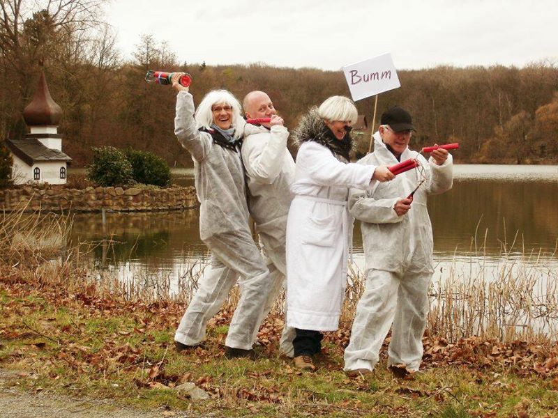 2014.02.16 Album Zwolle: Bilder von Ineke van Hartens von unserem Besuch in Zwolle: 2014.02.16 Album Zwolle: Besuch der Künstlerfreunde in Zwolle 2014.02.08: Bild Südmünsterländische Beutelrobbe Beutelrobbenjagt Im Bild die dynamitfischen Künstler (v.l.): Bärbel Sprzagala, Dr. Bernhard Meyer, Annette Aprill-Manns und Heinz Brück 2014.02.02. GEGENDARSTELLUNG: Fälschlicher Weise wurde in einer Zeitung vor ungefähr einem Jahr behauptet, es gäbe keine Beutelrobbe im Cappenberger See. Dies ist unhaltbar. Zum einen ist dann die Frage zu beantworten: Wo soll die südmünsterländische Beutelrobbe denn sonst leben, als in einem Gewässer des Südmünsterlandes? Zum anderen kann jeder Kirchgänger bestätigen, dass es etwas dennoch existiert, obwohl man es nicht immer sehen kann. Aber das Entscheidende: Bei der Durchsicht der Bilder, die letztes Jahr bei der Jagt der Künstlergruppe Offene Ateliers Lünen auf die Beutelrobbe entstanden sind, konnte der Beutelrobbenexperte Dr. Bernhard Meyer feststellen, dass die Beutelrobbe tatsächlich photographisch festgehalten wurde (siehe Bild). Auch dieses Jahr wird daher die mehr als 300 jährige Tradition der Beutelrobbenjagt am Cappenberger See fortgesetzt. Die Künstlergruppe Offene Ateliers Lünen wird am kommenden Samstag, den 8.2.2014 um 11.00 Uhr mit der Jagt beginnen. Jedermann kann sich beteiligen. Es ist lediglich eine Verkleidung als Eisbär in Form eines weißen Bademantels o.ä. und eine schwarz gefärbte Nase notwendig.