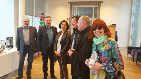 2014.07 Album von Panevecys: Einige Künstler der Gruppe "Offene Ateliers" sind aus der Lüner Partnerstadt Panevecys (Litauen) eingeladen worden, an der Veranstaltung "Painters Plain Air" in Zusammenhang mit der Kulturhauptstadt Riga teilzunehmen. Die Eröffnung des "Painters Plain Air" fand am 6.Juli 2014 statt. Hier ein Bild von einem Treffen im Rathaus mit dem Bürgermeister. Leider sind nicht alle Künstler beim Treffen dabei gewesen. Wir sind sehr angetan von der Gastfreundschaft und der Atmosphäre unter den Künstlern trotz aller Sprachbarrieren Es wird viel gemalt, das Wetter ist sonnig und heiß, so dass die Farben manchmal schneller trocknen als gewünscht. Sehr interessante Diskussionen und Gespräche über Malerei. Ich versuche heute mal Arbeiten zu fotografieren. Viele Grüße Klaus Zimmermann 2014.05.20 Album: offene Ateliers, Bilder von Christine Goldberg. 2014.05.19 Album: offene Ateliers, Bilder von Ineke van Hartens Album Met de BZK naar Lunen (Duitsland) Open ateliers. Es war ein anstrengender aber auch schöner Tag.