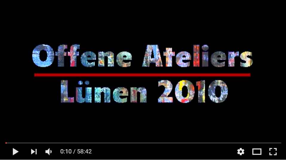 2012.12.07 Album: Jahresausstellung in der Stadtgalerie 2012.05.21 Bild Kulturaufstand: 2012.05.11 Bild: Dirk Schneider in der Art:-Eck-Galerie: 2012.05.06 Album: zum Tag der offenen Ateliers 2011.12.04 Album: Jahresausstellung in der Stadtgalerie 2010.10.19 Album: Ruhr 20110 lokal Heros Woche Pavillon verpakte Kunst 2010.10.04 Album: Ruhr 20110 offene Ateliers mit Ausstellung in der Stadtgalerie 2010.10.03. Ruhr2010 Video: Volker Kriegers hat auf youtube die Dokumentation über die "Offene Ateliers In Lünen" von 2010 eingestellt. Vielen Dank!! https://www.youtube.com/watch?v=w1uTCl1fol0 : 2010.09.24 Album: Stadtkirche St. Georg Ausstellung "Papier": 2009.05.02. Album: Hertie Kaufhaus "INSOFERN" 2009.10. Album: Der Volauf für Ruhr2010. Die erste Ausstellung und die Öffnung der einzelnen Ateliers der Künstlergruppe "offene Ateliers Lünen" |