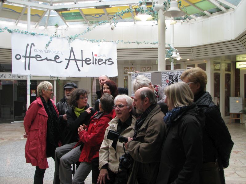 2015.12.06 Album: Bilder Mara Jägers zu unserer Jahresausstellung 2015 2015.12.05 Album: Jahresausstellung Stadtgalerie "URBANITÄT" 2015.08.05 Trauer: Liebe Kunstfreunde der Künstlergruppe "offene Ateliers Lünen", wir haben mit Bestürzung und Trauer vom plötzlichen Tode unseres Mitglieds Thomas Ohm erfahren. Thomas war ein Mitbegründer unserer Künstlergruppe im Zusammenhang mit der Kulturhauptstadt Ruhr 2010. Unsere Anteilnahme geht an seine Frau Petra und seinem Sohn. Wir werden Ihn immer als Künstler und Mitstreiter in Erinnerung behalten. Im Namen der Künstlergruppe "offene Ateliers Lünen" Heinz Brück 2015.08.06: Die Beisetzung von Thomas Ohm ist am Freitag den 14.8.2015 um 12:00 Uhr im Ruheforst Cappenberger Wald (Anfahrt Struckmannsberg). 2015.07.07 Album Enschede: Enschede Twente Bienale. Die Künstlergruppe offene Ateliers Lünen ist mit der Künstlergruppe aus Zwolle zu einer gemeinsamen Excursion in Enschede gewesen."Alles ist möglich" 2015.02.05 Bild u.Text Beutelrobbe: Jagd auf die Beutelrobbe im Cappenberger See